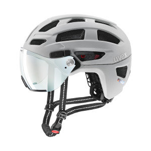 Uvex Finale Visor V - Der ultralässige Cityhelm mit selbsttönendem Visier für perfekte Sicht – Plug-in LED inklusive. Wie lässt sich ein erstklassiger Visierhelm noch besser machen? Die Antwort: mit dem uvex finale visor V. Das uvex variomatic® Visier passt seine Tönung in den zwei Schutzstufen cat. 1 – 2 automatisch an die aktuellen Lichtverhältnisse an und schützt deine Augen zuverlässig vor Sonneneinstrahlung, Fahrtwind und Fremdkörpern.