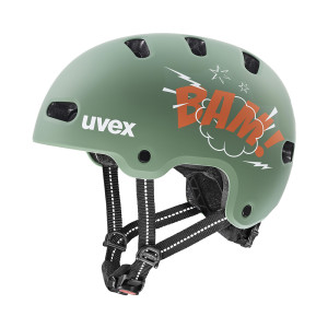 Helm sitzt. Style passt. Abenteuer geht los. Der uvex kid 4 style ist ein echter Hingucker auf zwei Rädern – gemacht für urbane Kids, die auf dem Rad auffallen wollen. Ob mit Monster-Graffiti, bunten Skater-Prints oder wilden Farbwelten: Wer diesen Helm trägt, fällt auf. Und bleibt sicher. Mit schlagfester ABS-Hartschale außen und stoßdämpfender EPS-Konstruktion innen steckt der Helm so einiges weg. Die zum Patent angemeldete uvex IAS-Weitenanpassung mit Drehmomentbegrenzung und der höhenverstellbare 360°-Vollring sorgen für satten Sitz – ohne Drücken, ohne Rutschen. Komfortable Innenpolster und der einhändig schließbare uvex monomatic-Verschluss mit verlängerter Polsterung machen den Helm alltagstauglich, zehn Belüftungsöffnungen bringen Frischluft ins System. Weitere Highlights: Reflektierende Gurtbänder erhöhen die Sichtbarkeit im Straßenverkehr. Für zusätzliche Sicherheit kann ein Rücklicht in die integrierte Rücklichthalterung am Helm gesteckt werden. Und Hiplok Garage heißt: Nie mehr Schloss vergessen! uvex kid 4 style – für kleine Rider mit großem Style.