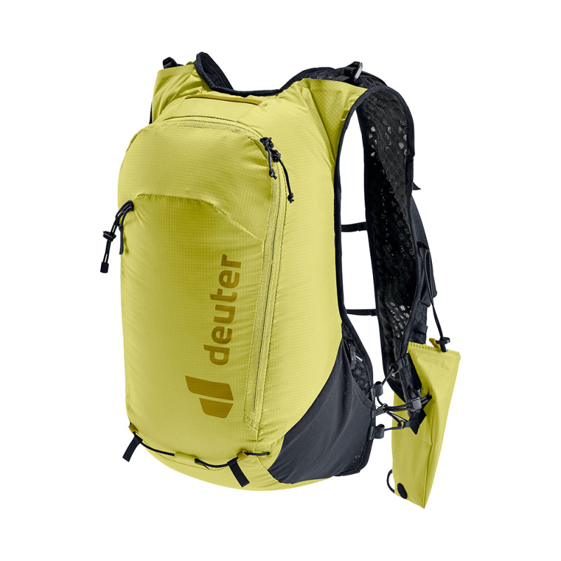 Leichtgewicht mit Komfort: ergonomische, westenförmige Schulterträger mit elastischem Kompressionsgurt, verstellbare Brustgurte und ein weiches Rückenmaterial lassen den Rucksack eng am Oberkörper anliegen. Zudem sorgen die Netzinnentasche und seitlichen Kompressionsriemen für eine Minimierung der Auf- und Abbewegung der Ladung beim Laufen. Die Holster-Stockhalterung am Schultergurt bietet schnellen Zugriff auf die Stöcke. Auch Softflask und GPS sind in den Taschen der Schulterträger stets griffbereit. Das Hauptmaterial des Trailrunnig-Rucksacks ist zu 100% recycelt und bluesign® zertifiziert.