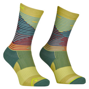 Die Ortovox All Mountain Mid Socks wurden für alle entwickelt, die auch bei eisigen Temperaturen auf den Bergen warme, trockene und komfortable Füße wollen. Dank feinster Merinowolle mit 21,5 Mikron Faserstärke bieten sie eine außergewöhnlich weiche Haptik, sind elastisch, stabil und temperaturregulierend. Merinowolle neutralisiert zudem unangenehme Gerüche und sorgt für ein natürlich ausgeglichenes Fußklima – perfekt für lange Touren im Schnee.