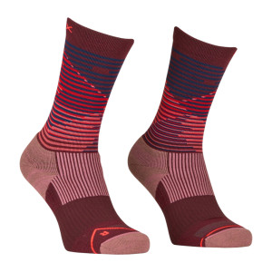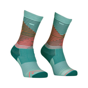 Ortovox All Mountain Mid Socks Women – warme, technische Merinosocken für kalte Tage in den Bergen. Diese Mid-Cut-Socken wurden speziell für Frauen entwickelt und kombinieren weiche Merinowolle mit innovativem Rundstrick für höchsten Tragekomfort ohne Reibungspunkte. Die feine Merinowolle mit 21,5 Mikron sorgt für angenehme Wärme, bleibt dabei atmungsaktiv und wirkt temperatur- sowie feuchtigkeitsregulierend – ideal bei Kälte und schweißtreibenden Aktivitäten.
