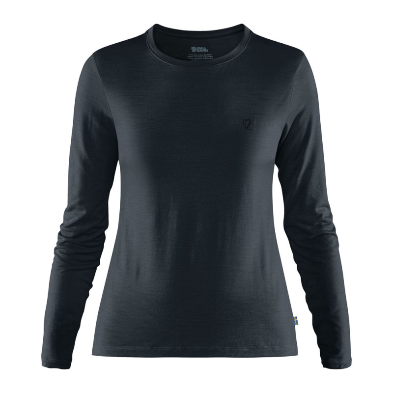 Fjällräven Abisko Wool Long Sleeve Women - Leichtes Langarm-Shirt aus weichem Jersey-Strick aus Merinowolle und Polyester. Es kombiniert die temperaturregulierenden Eigenschaften von Wollfasern mit der Strapazierfähigkeit und den feuchtigkeitsableitenden Eigenschaften von Kunstfasern. Eine perfekte Wahl als Basisschicht in warmem und kaltem Klima, und besonders praktisch auf langen Wanderungen, da Wolle auf natürliche Weise die Bildung von unangenehmen Gerüchen verhindert.