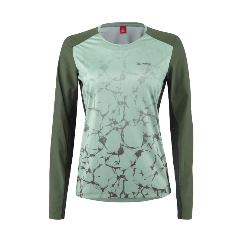 Dieses MTB-Longsleeve ist ein Highlight für ambitionierte Mountainbikerinnen! Die Ärmel aus robustem Webstoff sind leicht und weich, aber schützen dennoch wenn du mal wo anstreifst. Im Schulterbereich sorgt derselbe strapazierfähige Stoff für Abriebschutz beim Tragen eines Rucksacks. Perforiertes Material an den Innenseiten der Arme und am Rumpf bietet dir zusätzliche Belüftung. Der atmungsaktive und schnell trocknende Stoff an der Vorderseite macht das Shirt so herrlich leicht. Die fein geklebte Ärmelabschlüsse und eine partielle Halsleiste sorgen für den letzten Schliff.