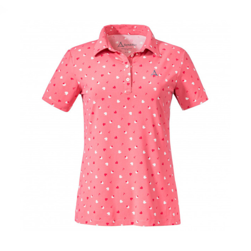 Schöffel Polo Shirt Achhorn Women - Stylisch durch die Berge im modernen Polo Shirt von Schöffel. Der Allover Print des Wandershirts ist ein echter Hingucker, aber auch in Sachen Funktionalität muss sich das Schöffel Shirt nicht verstecken. Das Material des Polo Shirtes ist schnell trocknend und verfügt über einen hohen Feuchtigkeitstransport. So wird Schweiß schnell vom Körper weg transportiert und nach außen abgegeben. Zurück bleibt ein trockenes und angenehmes Gefühl auf der Haut. Dieser Tragekomfort wird auch durch den 4-Wege-Stretch weiter unterstützt, der zudem auch für uneingeschränkte Bewegungsfreiheit sorgt. Perfekt ausgestattet für Deine nächste Tour.