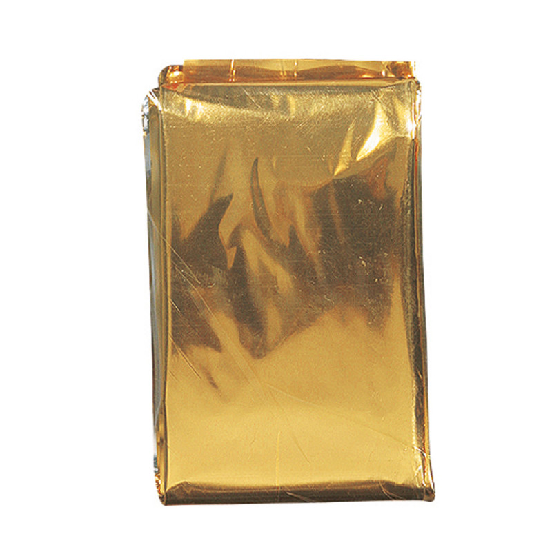 Für den Wärmeerhalt wird die silberne Seite nach innen gedreht, bei Hitzeschutz dient die goldene Seite nach innen – dann als schattenspendendes Segel und nicht zum Einwickeln. Klein, leicht und im Ernstfall von großer Bedeutung.