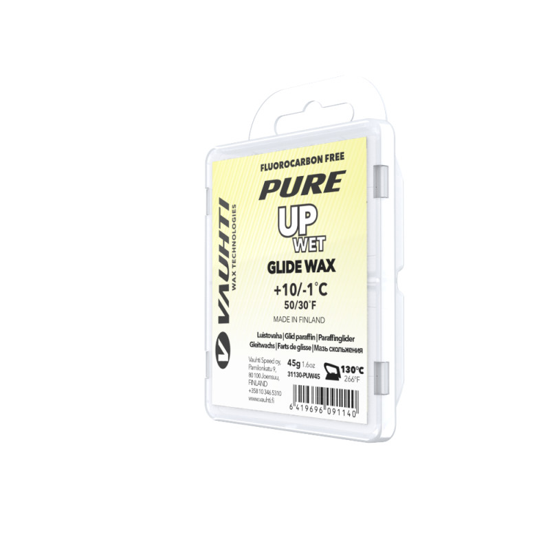 Das Vauhti Pure UP Wet Glide Wax ist ein festes, fluorfreies Gleitwachs für nasse Schneeverhältnisse. Es sorgt für optimale Gleiteigenschaften bei wärmeren Temperaturen und feuchtem Schnee, ist umweltfreundlich und einfach aufzutragen. Ideal für maximale Leistung bei nassem Schnee.