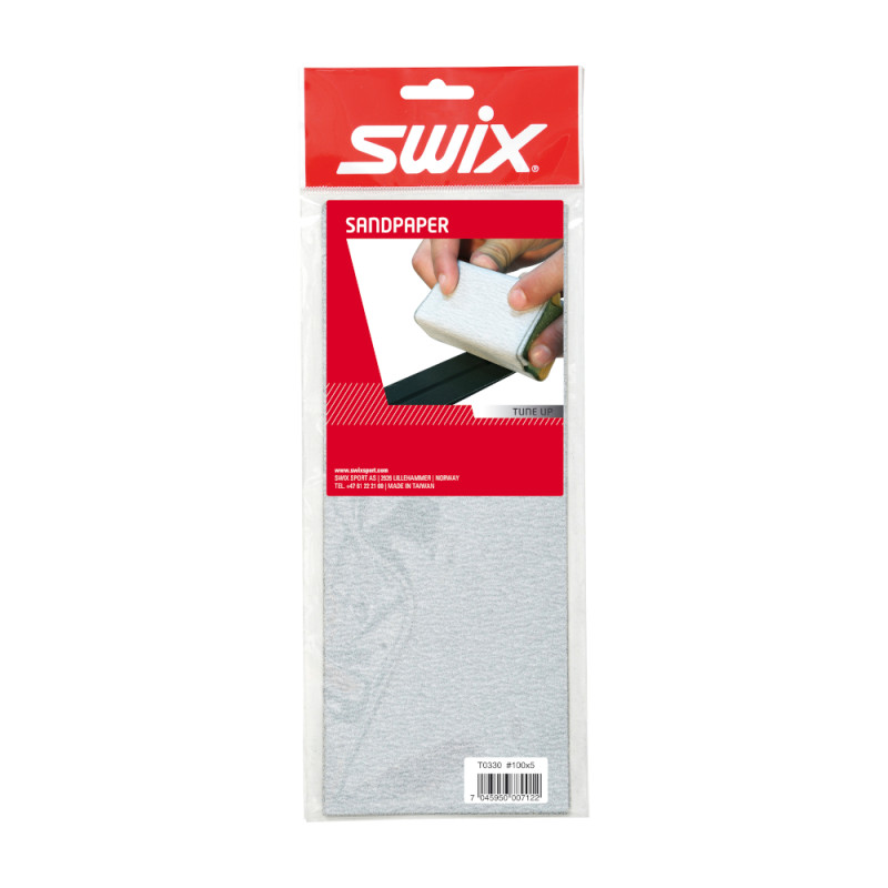 Das Swix Sand Paper #100 enthält hochwertige Siliziumkarbid-Schleifpartikel und ist optimal für Beläge und Kanten geeignet. Es wird zum Einreiben der Griffzone von Langlaufskiern verwendet, um besseren Halt zu schaffen, und eignet sich ebenso zum Schleifen von Alpinskibelägen nach einer Reparatur mit Polystick.