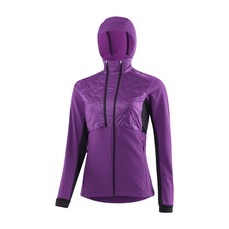Das Material an Rumpf, Ärmeln und Kapuze ist windabweisend und dank PFC-freier Imprägnierung wasserabweisend. Highlight ist die modische Steppung auf der Vorderseite und die beiden Reißverschlüssen im Frontbereich. Neben dem durchgehenden Zip zum Öffnen und Schließen dient der bis zur Taille reichende, hinterlegte Zip der Belüftung. Die Jacke ist im sportlichen Slim Fit gehalten, der eng am Körper anliegt und so sportartspezifisch jede Bewegung mitmacht.
