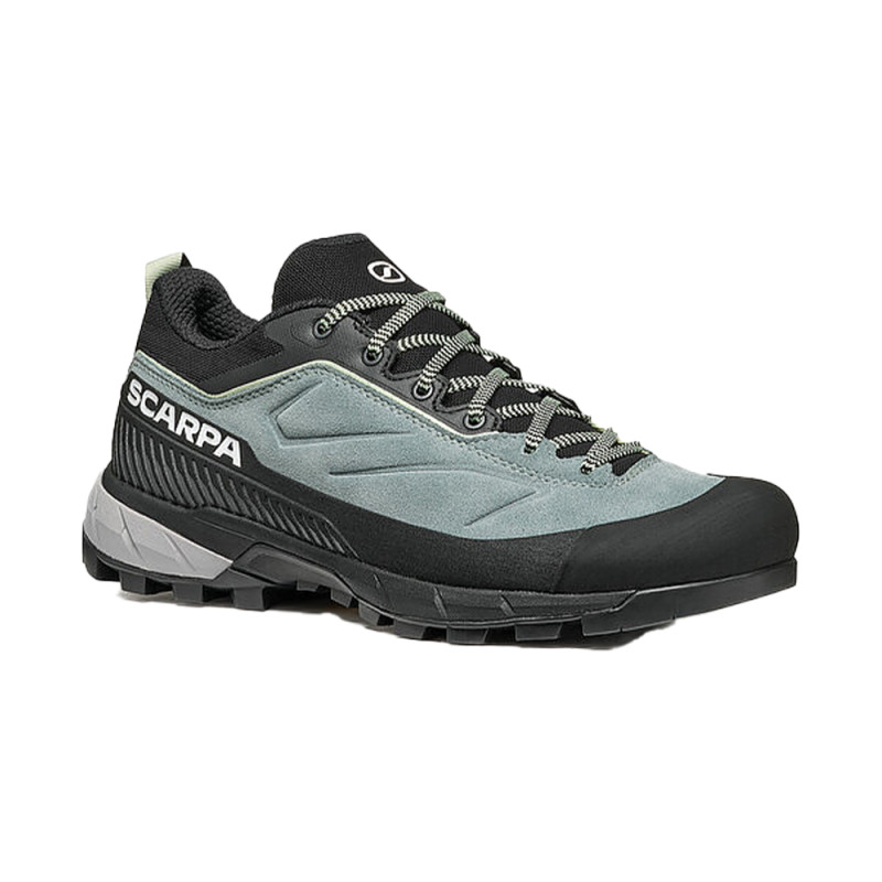 The Scarpa Rapid XT Women is a comfortable leather shoe ideal for approach, trail, and easy hikes – and boasts a clean design. Every detail has been carefully developed to provide grip, comfort, and protection. One example is the all-round TPU rand, which is abrasion-resistant and offers additional protection. The Vibram® MegaGrip sole, with special climbing zones in the toe area and the Brake System in the heel, ensures excellent stability and support. In addition, the shoe's innovative, ergonomic shape is adapted to the natural conformation of the foot, especially in the toe area, where the shoe is designed to be wide and comfortable.