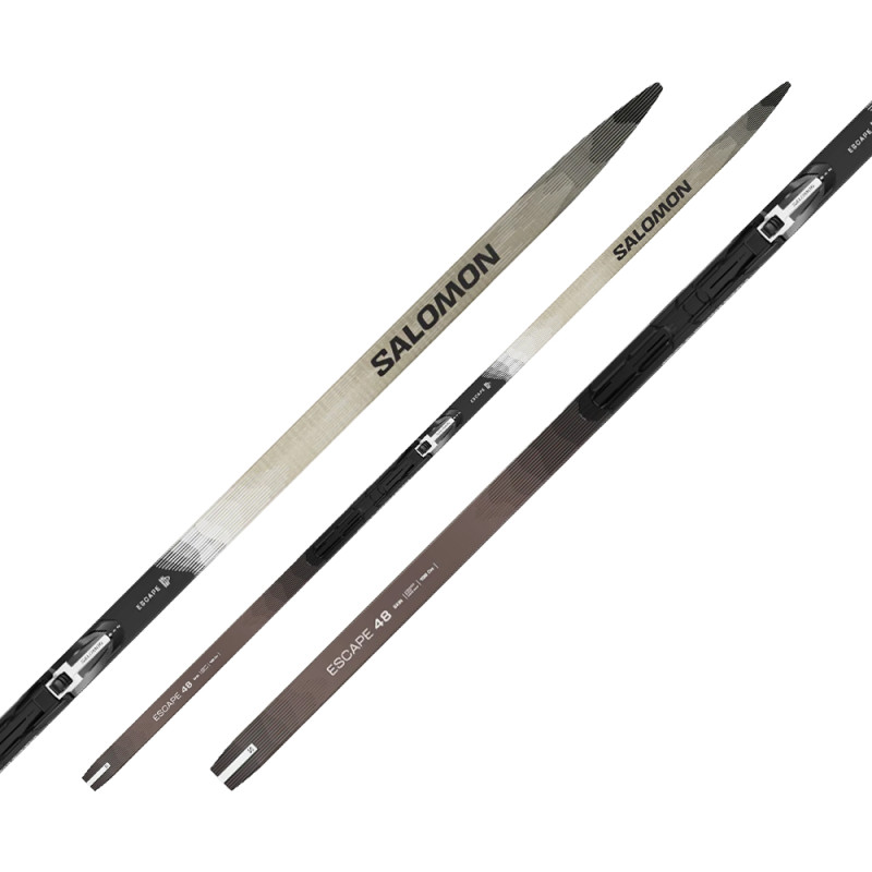 The Escape 48 eSkin + Prolink Shift Set from Salomon is a sporty, classic cross-country ski set designed specifically for skiers who want comfort, control, and low maintenance throughout the day. It combines proven technologies that offer grip without wax, stability in different snow conditions, and a flexible binding system that can be adapted to different snow conditions.