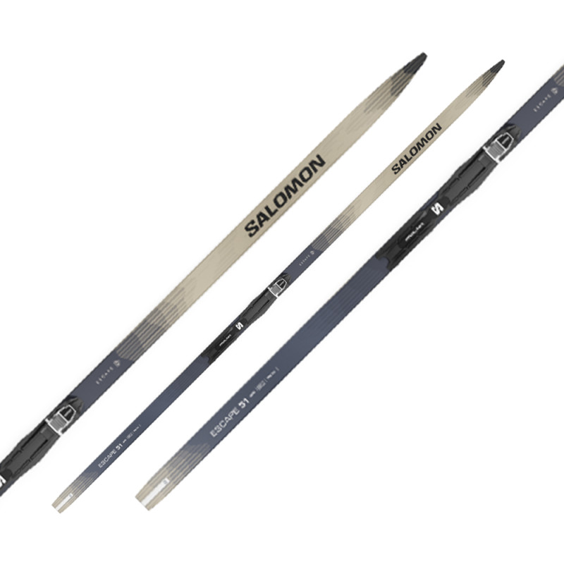 The Salomon Escape 51 GR + Prolink Access 25/26 is a classic cross-country ski set, ideal for beginners and recreational skiers looking for a low-maintenance system. Waxless thanks to G2 Plus Grip technology, this ski offers secure grip and smooth glide. The Prolink Access Classic binding is pre-mounted, so you can start skiing right away. The ski with a Densolite core combines lightness and stability, while the S-Cut shape and medium length ensure good control and comfort.