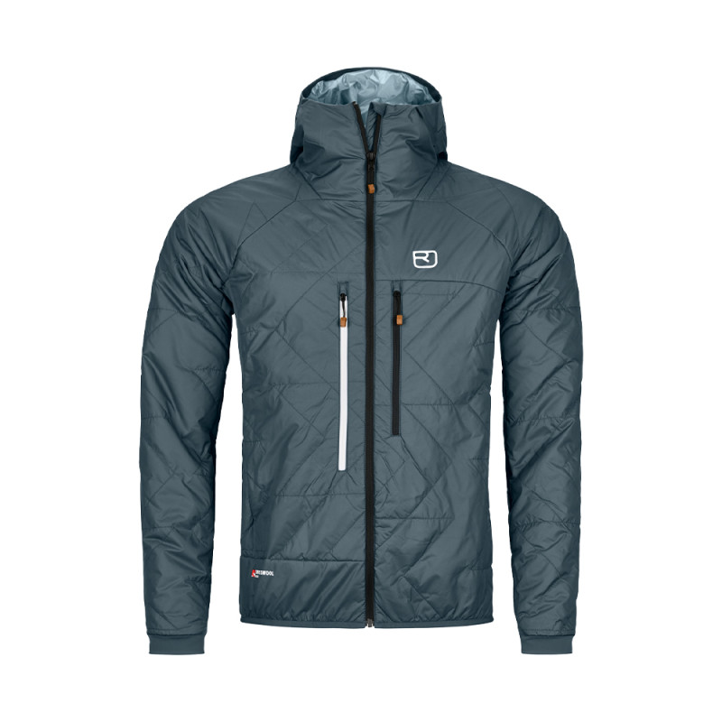 The Ortovox Swisswool Piz Boè Jacket is the lightweight insulation jacket for demanding ski tours. With its 60 g/m² Swisswool filling, it offers an excellent warmth-to-weight ratio, keeping you protected on cold days. The durable Pertex Quantum outer fabric shields you from wind and moisture while maintaining high breathability.