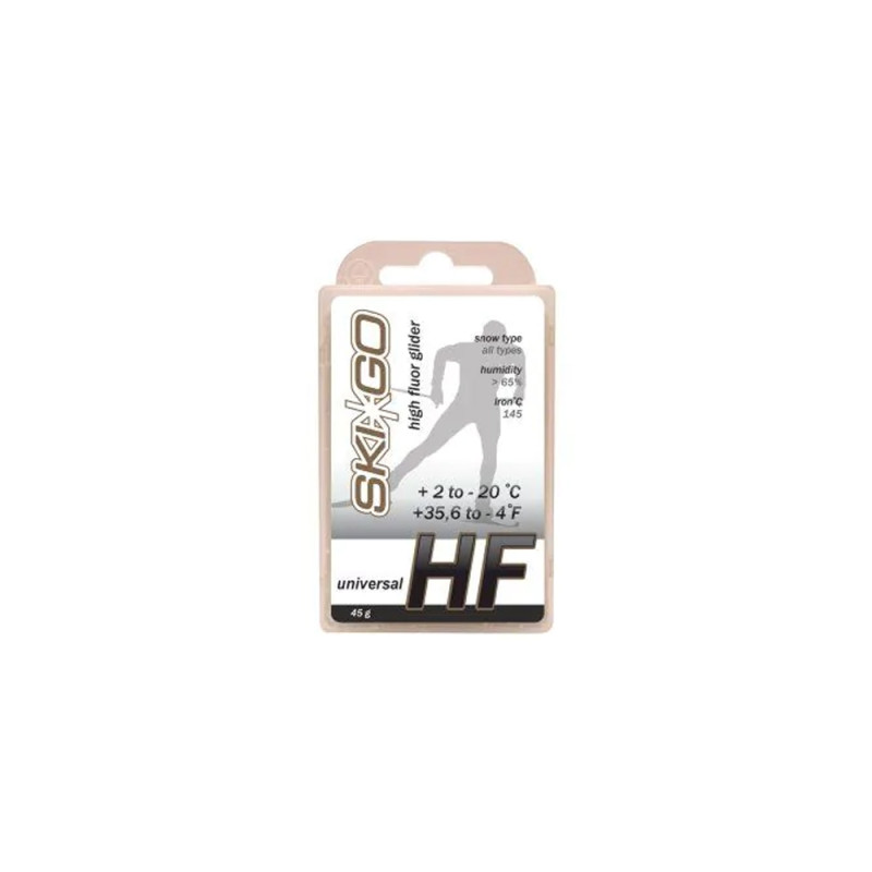 Skigo HF Paraffin Universal – The Skigo HF Paraffin Universal is a versatile high-performance wax suitable for both racing and training. With its high fluorine content, it provides excellent glide, water, and dirt repellence – performing best in humidity above 65 %. Its universal formula ensures consistent results across all snow types and temperatures from +2 °C to –20 °C. Perfect for athletes who demand reliable speed and control in any condition.