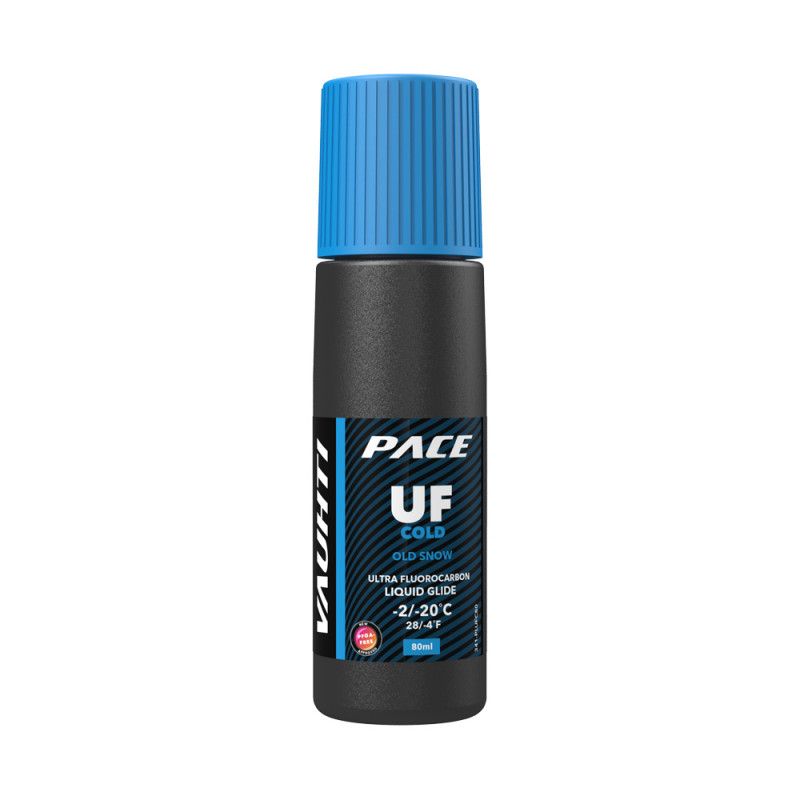 Vauhti UF Cold Liquid Glide 80ml - The liquid gliding wax Pace UF is specially designed for performance skiers and demanding active skiers. High-quality hydrocarbon components, hard paraffins and carefully selected additives give the products excellent performance, good durability and dirt resistance in all weather conditions. Especially for old and artificial snow.