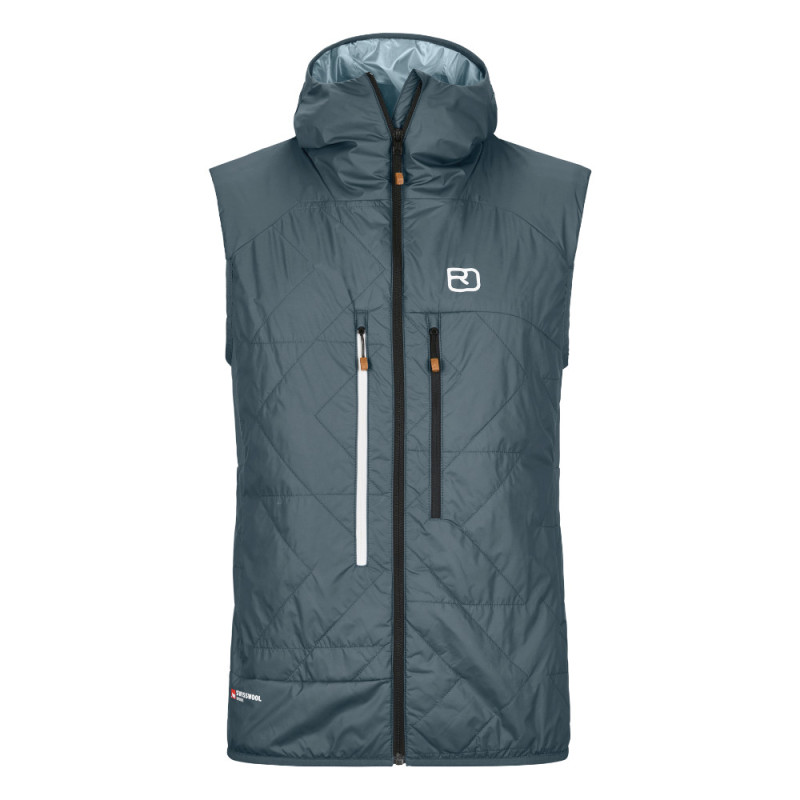 The Ortovox Swisswool Piz Boe Vest is a lightweight insulation vest for demanding ski tours. With 60 g/m² Swisswool filling, it delivers an excellent warmth-to-weight ratio, keeping you reliably protected on cold days. The durable Pertex Quantum outer fabric shields you from wind and moisture while remaining highly breathable.