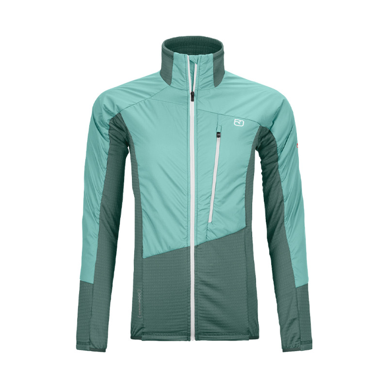 Ortovox Westalpen Swisswool Hybrid Jacket – Functional Merino fleece jacket with Swisswool inserts for ski and alpine tours. This hybrid jacket combines Swiss-made Swisswool insulation with Merino Fleece Grid fabric featuring fine Tasmanian Merino wool on the inside. The 60 g/m² Swisswool filling provides targeted warmth and protection where needed, while the elastic, breathable, and wind-resistant Swisswool Tec-Stretch outer material ensures flexibility and comfort.